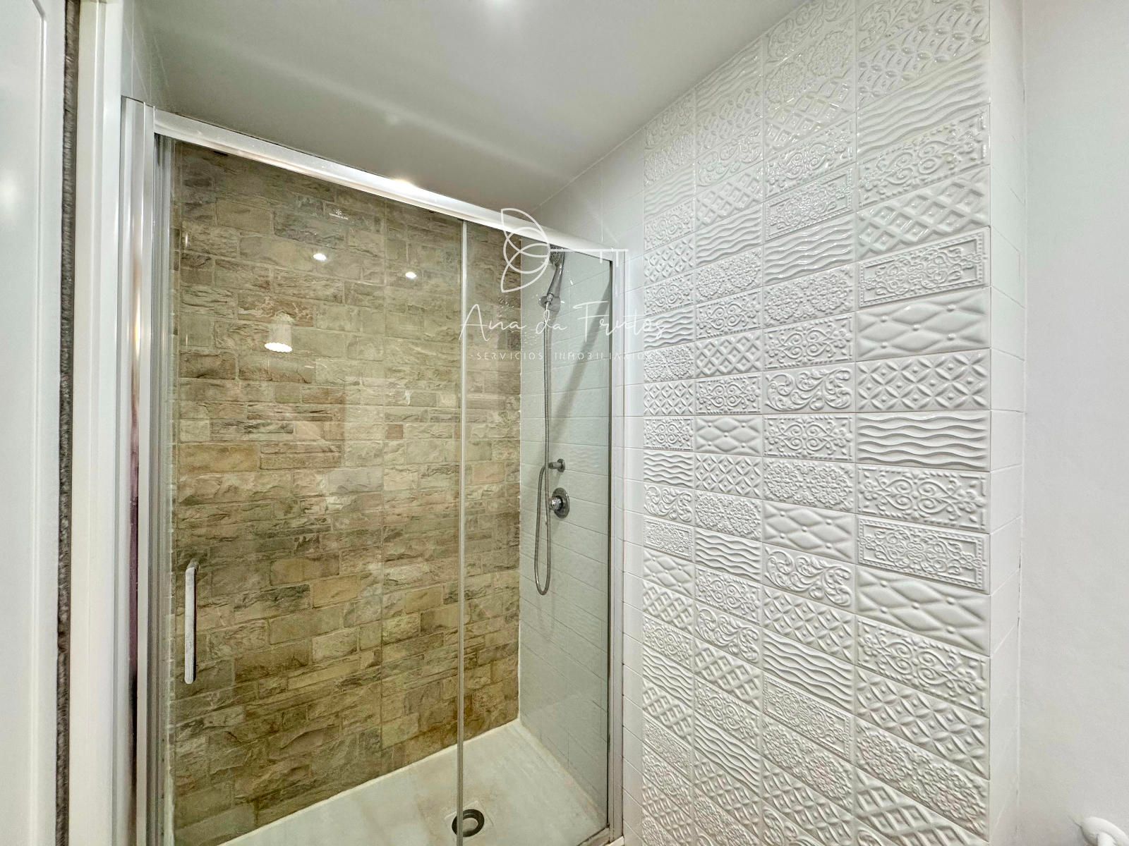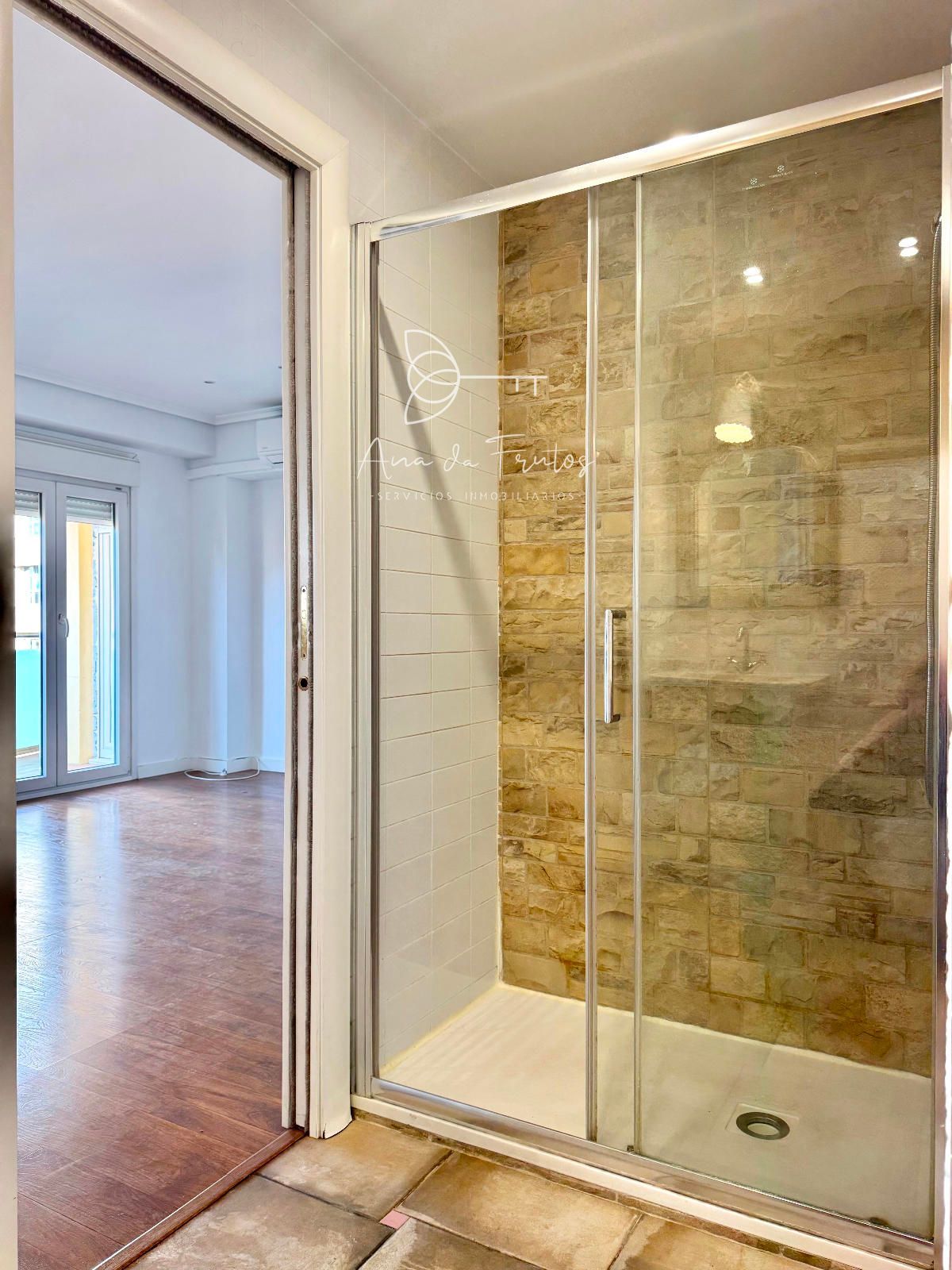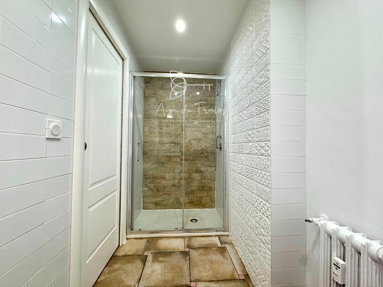 El amplio y coqueto baño cuenta con una gran ducha con mampara.